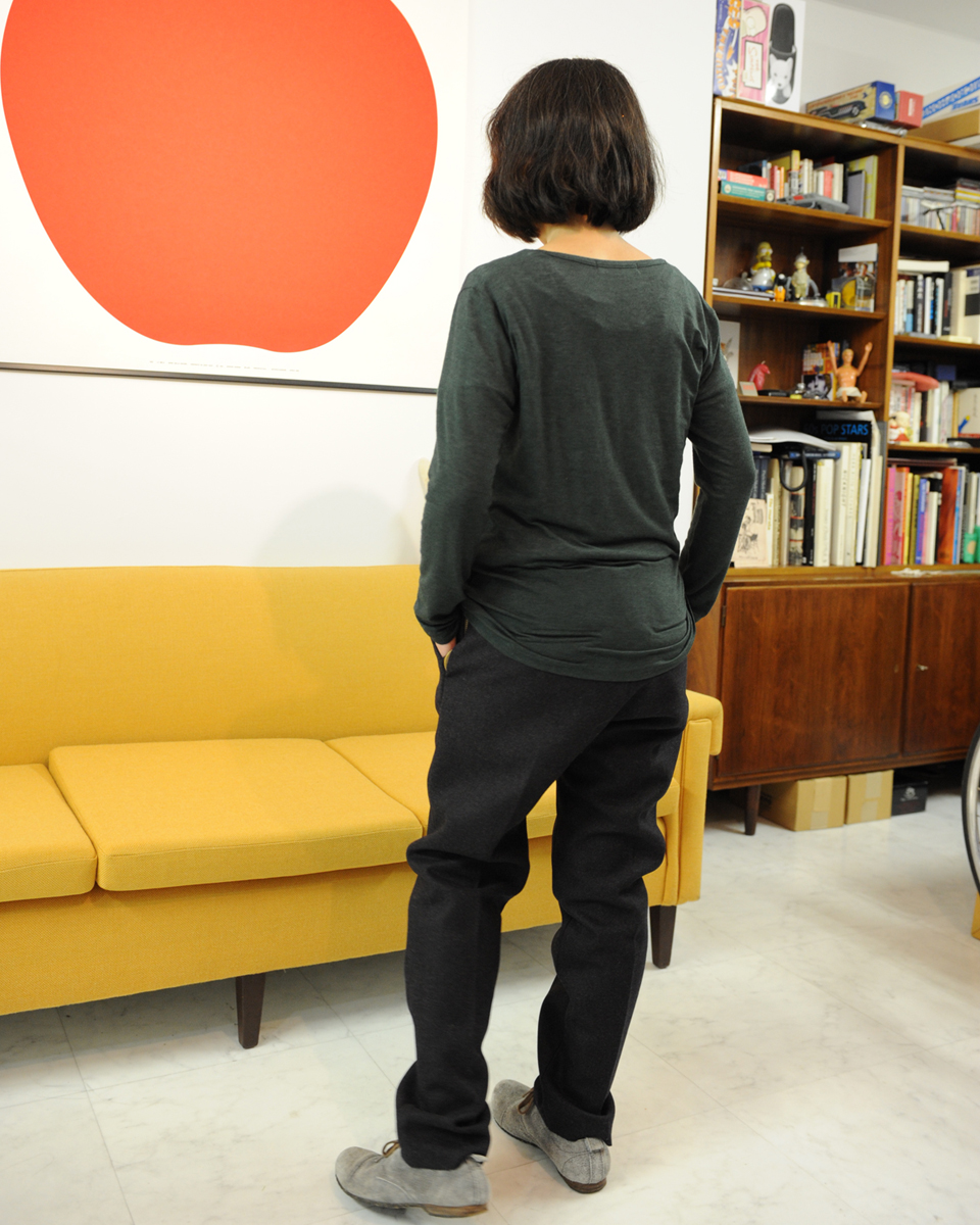 ジッパーが左サイドに付いていてスラックスでありながら女性らしいラインを可能にしています。寒くなってきた今、これから、一番いい時期かもしれません。